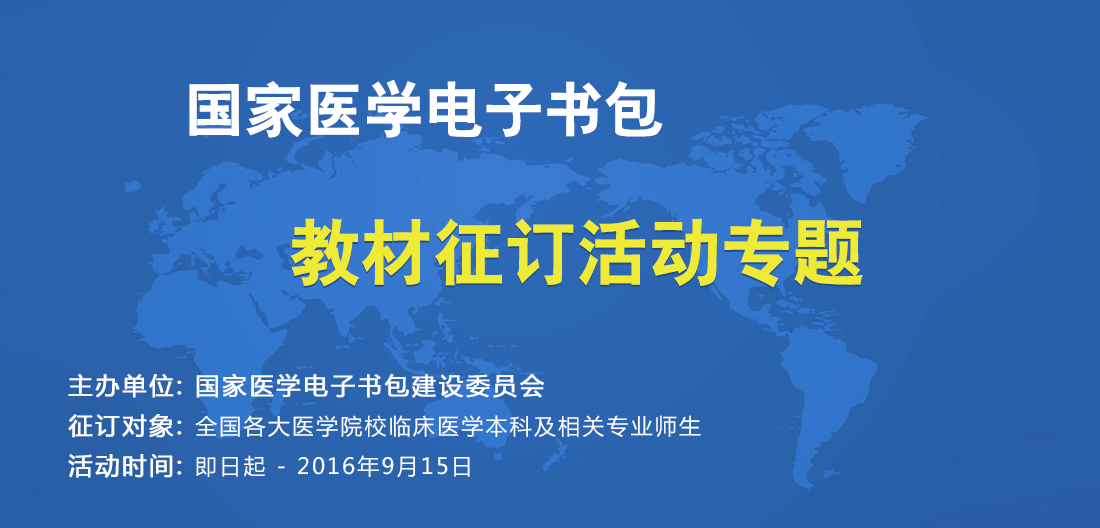 国家医学电子书包-全国高等教育医学数字化规划教材,是“十二五”国家新闻出版改革发展库重点项目,是国家文化产业发展专项资金重点资助项目,也是目前首个由国家重点资助的医学高等教育数字化教改项目。
